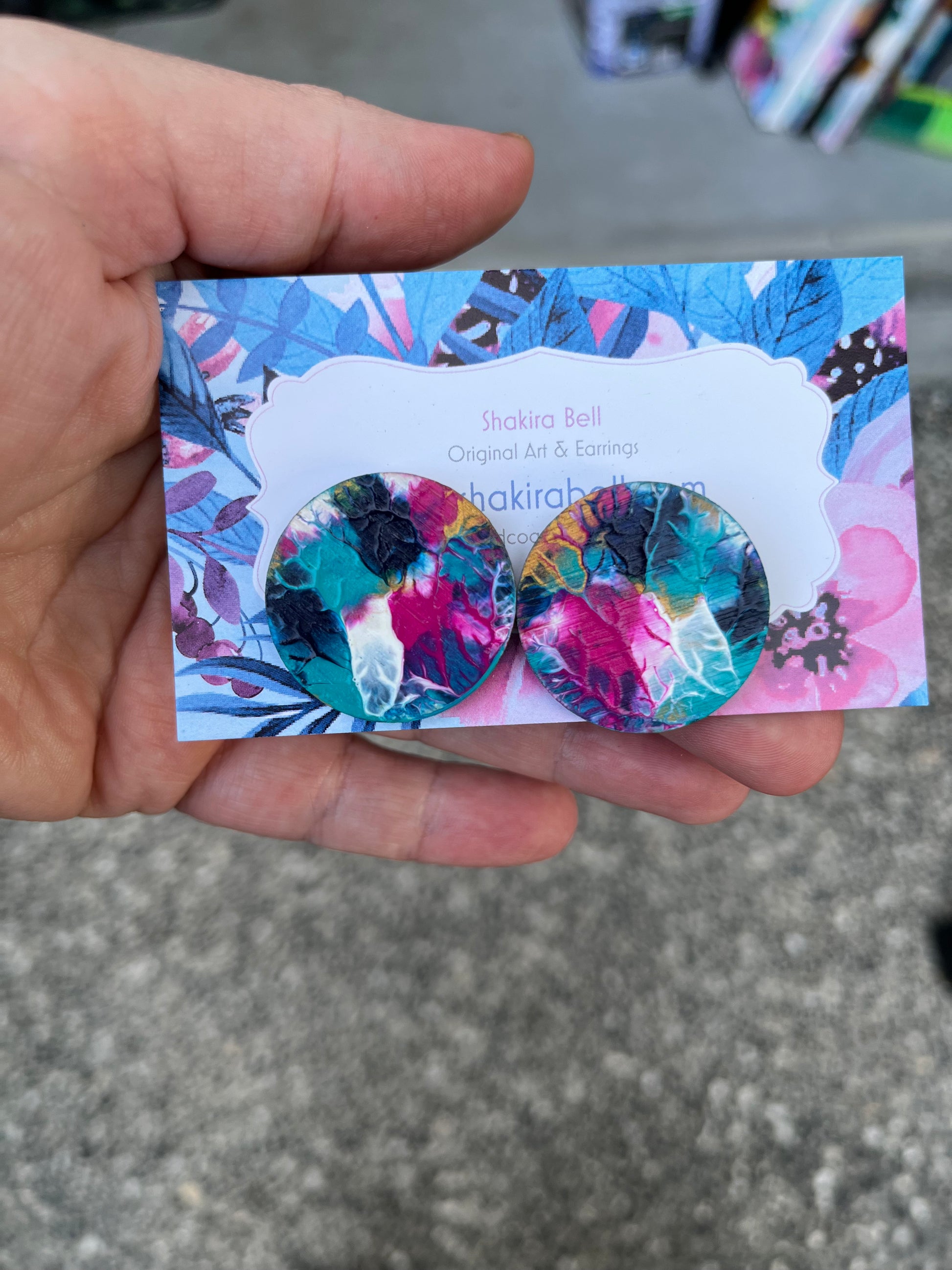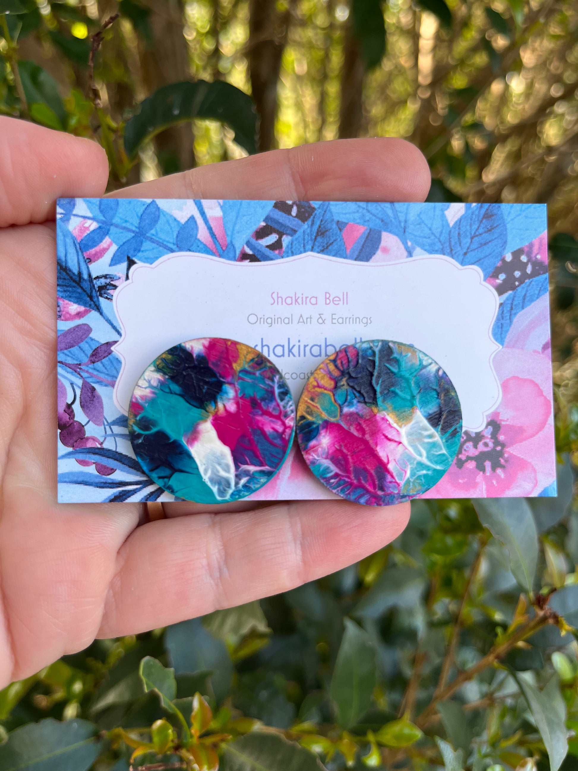 They are painted in acrylic paint and finished with a handpainted UV glossy varnish sealant! The back of the earring is not painted.. They have a unique textured look to them! 😍💕