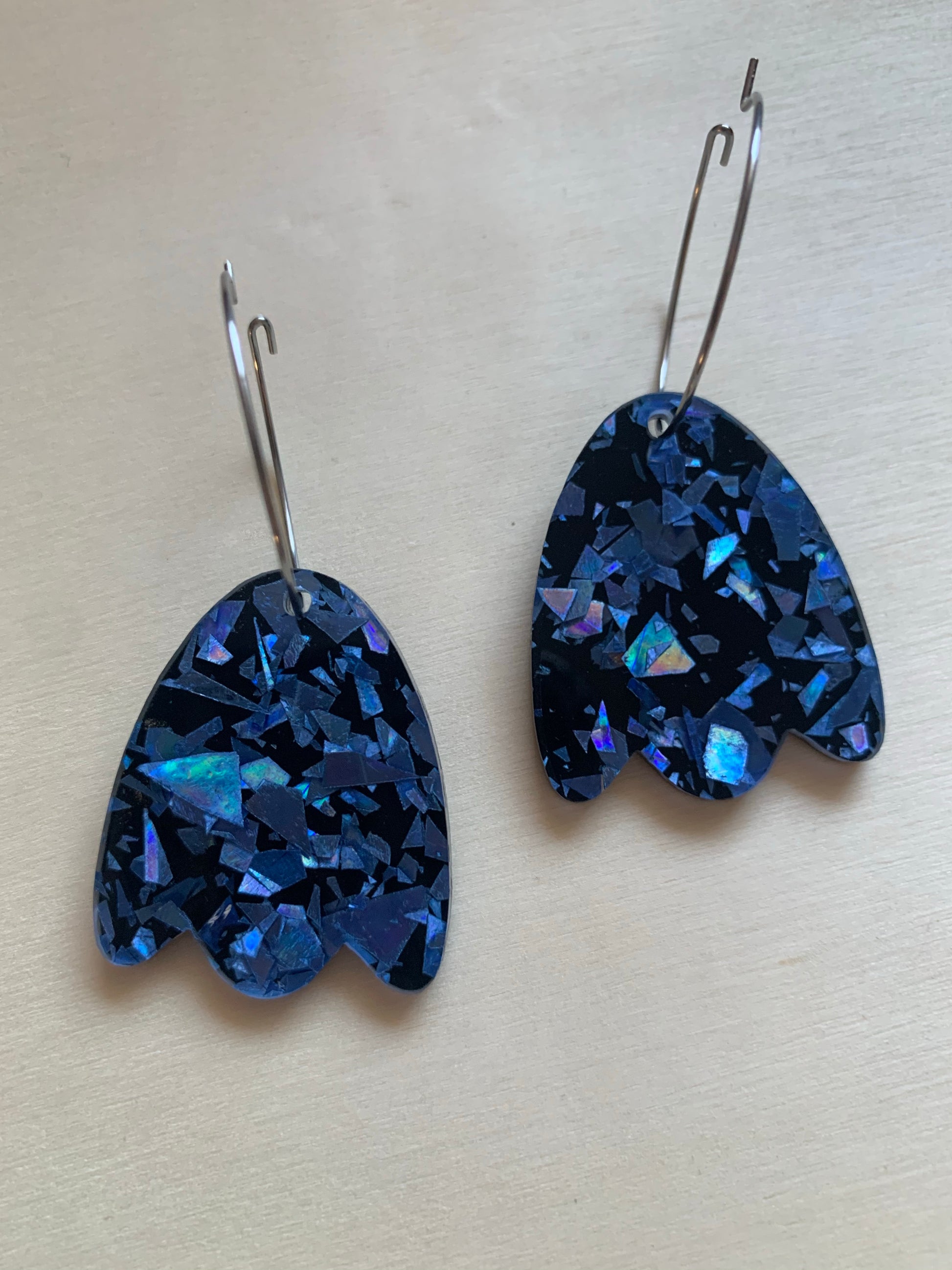 Blue Holographic petal Hoops