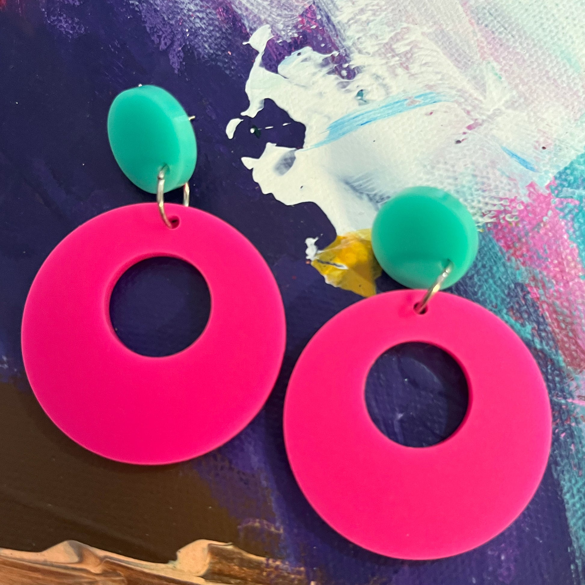 Make a very fun statement in these acrylic dangles ..